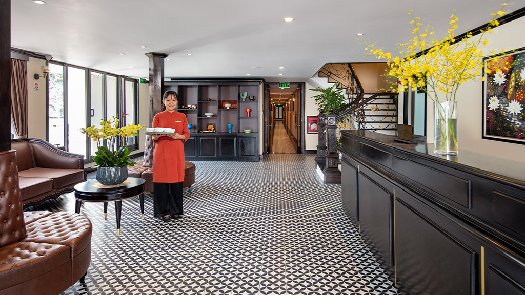Đội ngũ thủy thủ của du thuyền chào đón quý khách tại lô số 34, Cảng Quốc Tế Tuần Châu, Quảng Ninh.