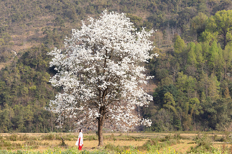 Tại Bảo Lạc (Cao Bằng), hoa mác cọt nở rộ ở thời điểm cuối tháng 2, đầu tháng 3, thu hút rất đông người dân, du khách tới đây tham quan, chụp ảnh.